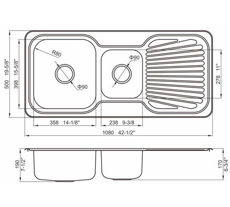 槽底采用斜面壓痕,四輻導(dǎo)流槽設(shè)計(jì),與平面壓痕和無(wú)痕水槽相比,導(dǎo)水更為流暢,下水更迅速,能有效防止積水,消除沉淀物