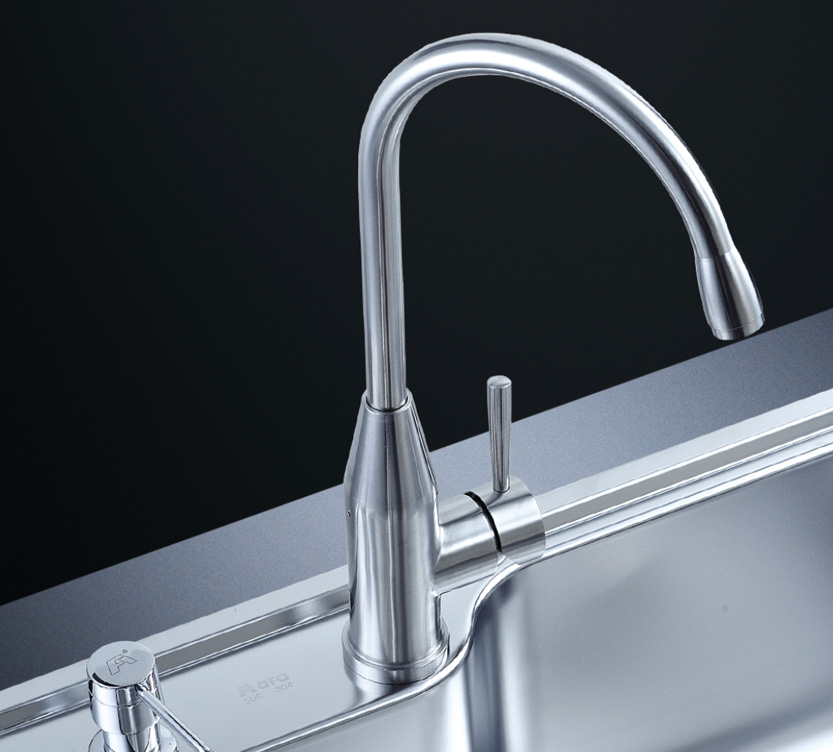 阿發水槽整體經拉絲處理,質地更加光滑,視覺更加柔和。能有效抵擋異物撞擊,刮傷及磨損,防止油污沾染,常用常新;柔和的光澤令水槽平添高雅氣質,更能避免鏡面材質反射的光污染