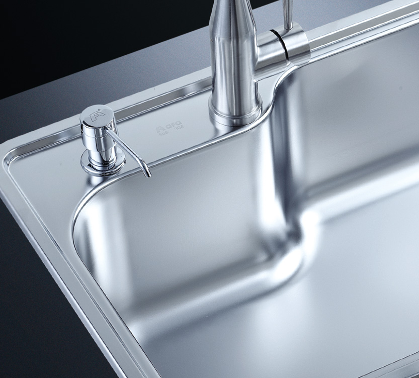 阿發水槽立邊采用國際先進的10-25°小R角一次成型拉伸技術,更具立體感與時尚潮流,亦能充分擴展水槽利用空間;一次成型拉伸技術,杜絕了焊接工藝易產生的水槽生銹,脫焊事故,充分保障水槽50年以上的使用壽命