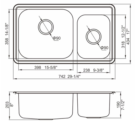 槽底采用斜面壓痕,四輻導流槽設計,與平面壓痕和無痕水槽相比,導水更為流暢,下水更迅速,能有效防止積水,消除沉淀物