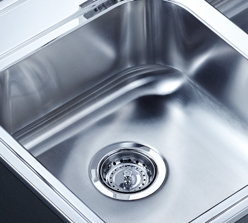 阿發水槽立邊采用國際先進的10-25°小R角一次成型拉伸技術,更具立體感與時尚潮流,亦能充分擴展水槽利用空間;一次成型拉伸技術,杜絕了焊接工藝易產生的水槽生銹,脫焊事故,充分保障水槽50年以上的使用壽命
