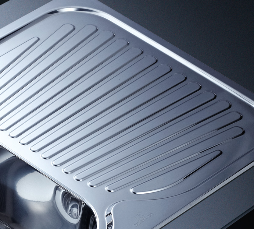 阿發(fā)水槽立邊采用國(guó)際先進(jìn)的10-25°小R角一次成型拉伸技術(shù),更具立體感與時(shí)尚潮流,亦能充分?jǐn)U展水槽利用空間;一次成型拉伸技術(shù),杜絕了焊接工藝易產(chǎn)生的水槽生銹,脫焊事故,充分保障水槽50年以上的使用壽命