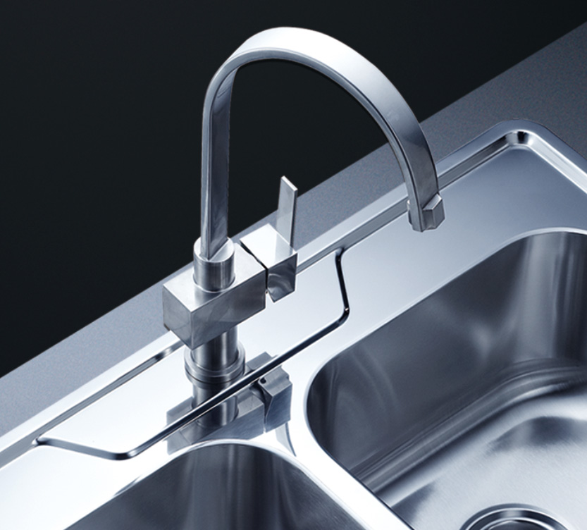 阿發水槽立邊采用國際先進的10-25°小R角一次成型拉伸技術,更具立體感與時尚潮流,亦能充分擴展水槽利用空間;一次成型拉伸技術,杜絕了焊接工藝易產生的水槽生銹,脫焊事故,充分保障水槽50年以上的使用壽命