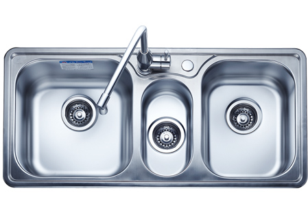 槽底采用斜面壓痕,四輻導流槽設計,與平面壓痕和無痕水槽相比,導水更為流暢,下水更迅速,能有效防止積水,消除沉淀物