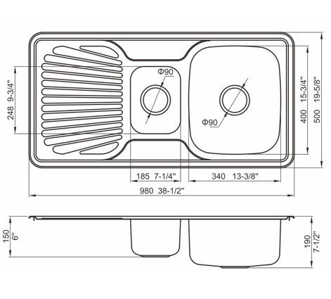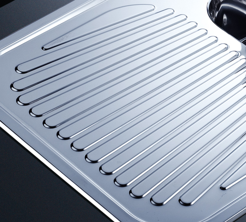 阿發水槽立邊采用國際先進的10-25°小R角一次成型拉伸技術,更具立體感與時尚潮流,亦能充分擴展水槽利用空間;一次成型拉伸技術,杜絕了焊接工藝易產生的水槽生銹,脫焊事故,充分保障水槽50年以上的使用壽命