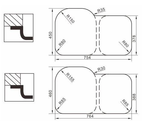 阿發水槽立邊采用國際先進的10-25°小R角一次成型拉伸技術,更具立體感與時尚潮流,亦能充分擴展水槽利用空間;一次成型拉伸技術,杜絕了焊接工藝易產生的水槽生銹,脫焊事故,充分保障水槽50年以上的使用壽命