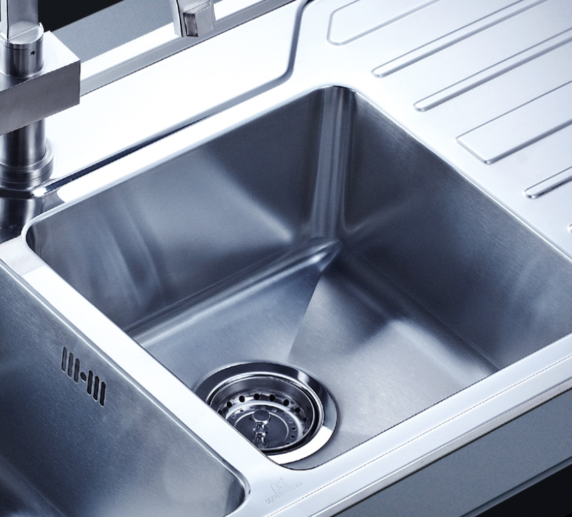 阿發水槽立邊采用國際先進的10-25°小R角一次成型拉伸技術,更具立體感與時尚潮流,亦能充分擴展水槽利用空間;一次成型拉伸技術,杜絕了焊接工藝易產生的水槽生銹,脫焊事故,充分保障水槽50年以上的使用壽命