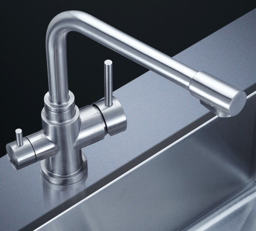 阿發水槽立邊采用國際先進的10-25°小R角一次成型拉伸技術,更具立體感與時尚潮流,亦能充分擴展水槽利用空間;一次成型拉伸技術,杜絕了焊接工藝易產生的水槽生銹,脫焊事故,充分保障水槽50年以上的使用壽命