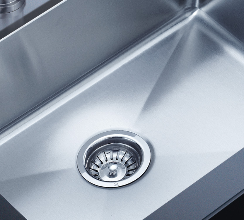 阿發水槽整體經拉絲處理,質地更加光滑,視覺更加柔和。能有效抵擋異物撞擊,刮傷及磨損,防止油污沾染,常用常新;柔和的光澤令水槽平添高雅氣質,更能避免鏡面材質反射的光污染