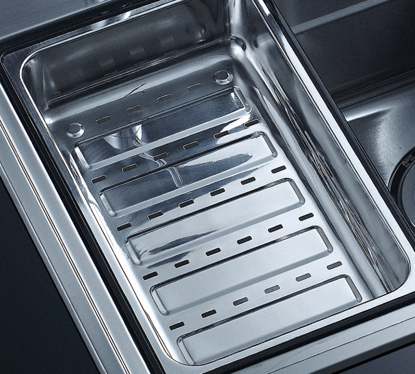 阿發(fā)水槽立邊采用國(guó)際先進(jìn)的10-25°小R角一次成型拉伸技術(shù),更具立體感與時(shí)尚潮流,亦能充分?jǐn)U展水槽利用空間;一次成型拉伸技術(shù),杜絕了焊接工藝易產(chǎn)生的水槽生銹,脫焊事故,充分保障水槽50年以上的使用壽命