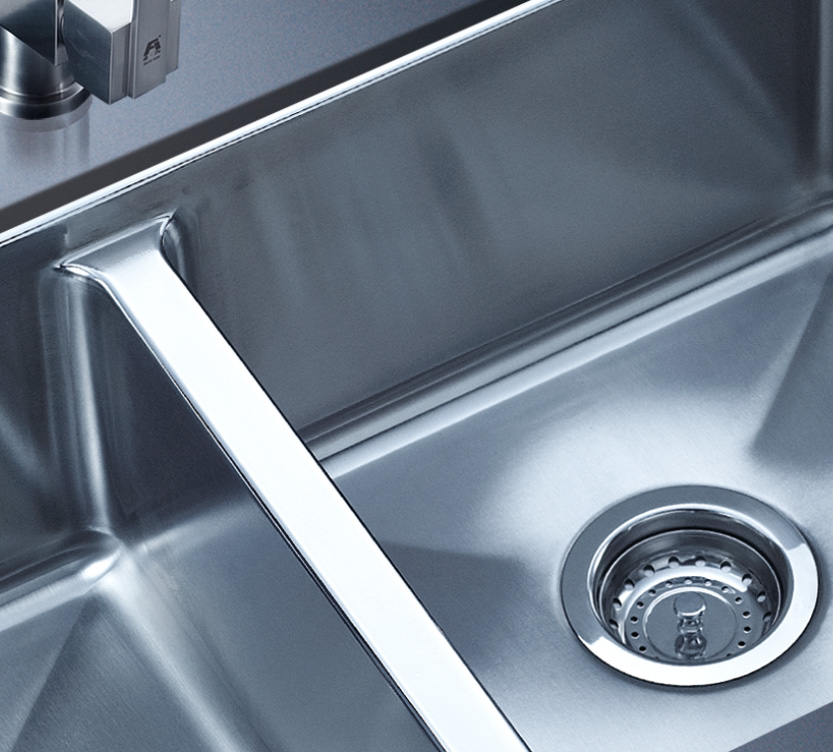 阿發水槽立邊采用國際先進的10-25°小R角一次成型拉伸技術,更具立體感與時尚潮流,亦能充分擴展水槽利用空間;一次成型拉伸技術,杜絕了焊接工藝易產生的水槽生銹,脫焊事故,充分保障水槽50年以上的使用壽命