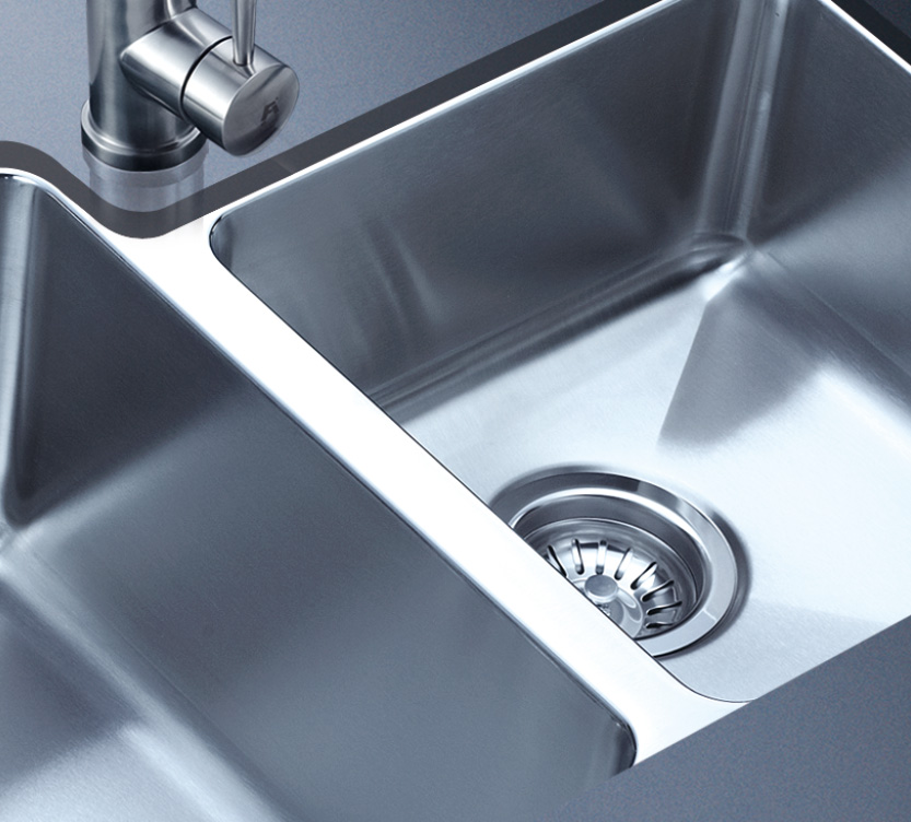 阿發水槽整體經拉絲處理,質地更加光滑,視覺更加柔和。能有效抵擋異物撞擊,刮傷及磨損,防止油污沾染,常用常新;柔和的光澤令水槽平添高雅氣質,更能避免鏡面材質反射的光污染