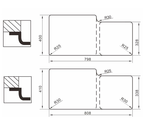 水槽四邊條采用一次成型的折彎加強筋工藝,雙倍堅固,承重力更強,解決了普通焊接工藝容易出現的凹點、脫焊、易割手等問題。專業配置的密封條和固定夾,安裝平整度高,不滲水,不松動