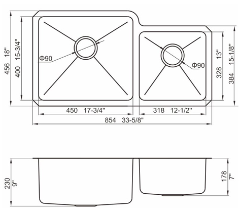 槽底采用斜面壓痕,四輻導流槽設計,與平面壓痕和無痕水槽相比,導水更為流暢,下水更迅速,能有效防止積水,消除沉淀物