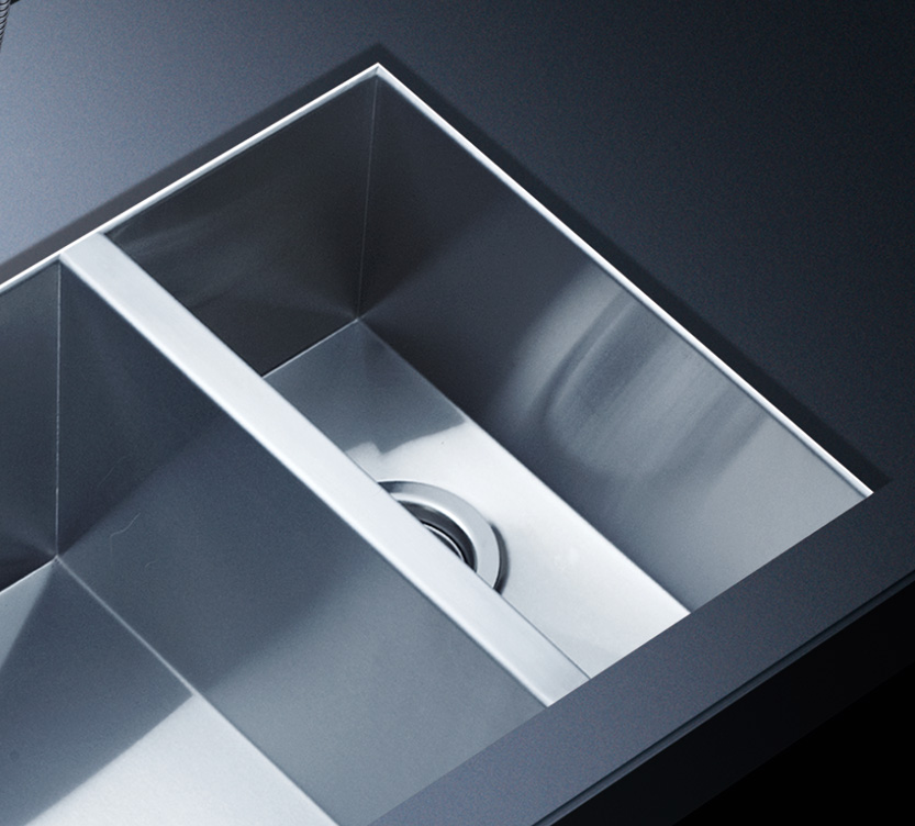 水槽四邊條采用一次成型的折彎加強筋工藝,雙倍堅固,承重力更強,解決了普通焊接工藝容易出現的凹點、脫焊、易割手等問題。專業配置的密封條和固定夾,安裝平整度高,不滲水,不松動