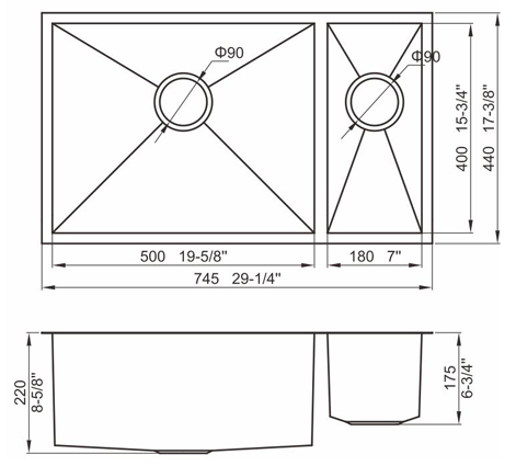 槽底采用斜面壓痕,四輻導流槽設計,與平面壓痕和無痕水槽相比,導水更為流暢,下水更迅速,能有效防止積水,消除沉淀物
